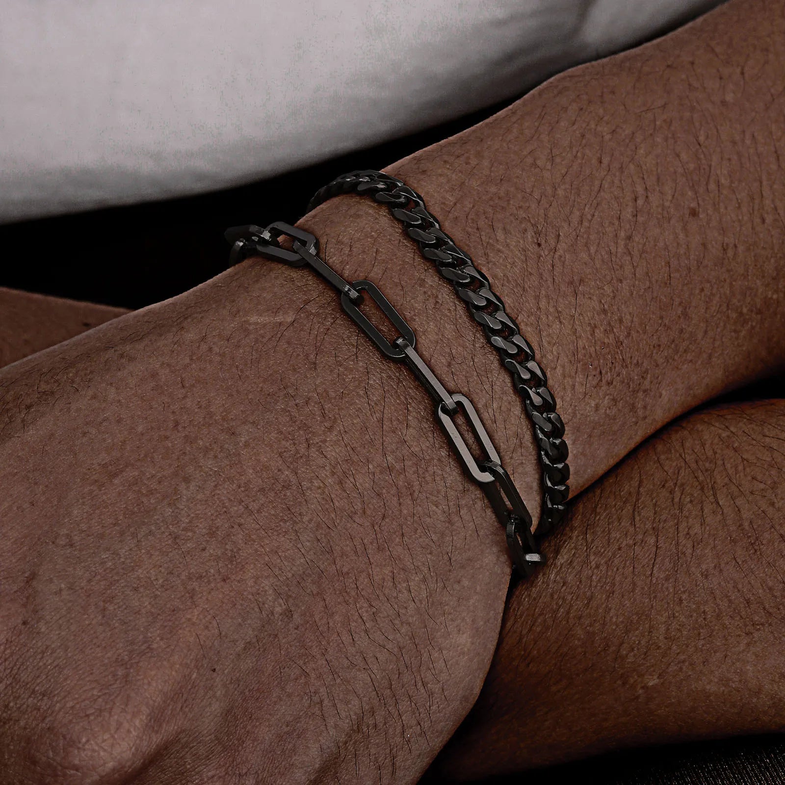 The Jaxon Chain Set brings bold urban style to any look with its sleek rectangular and Cuban link bracelets. Designed for versatility, these pieces deliver a perfect balance of strength and sophistication.