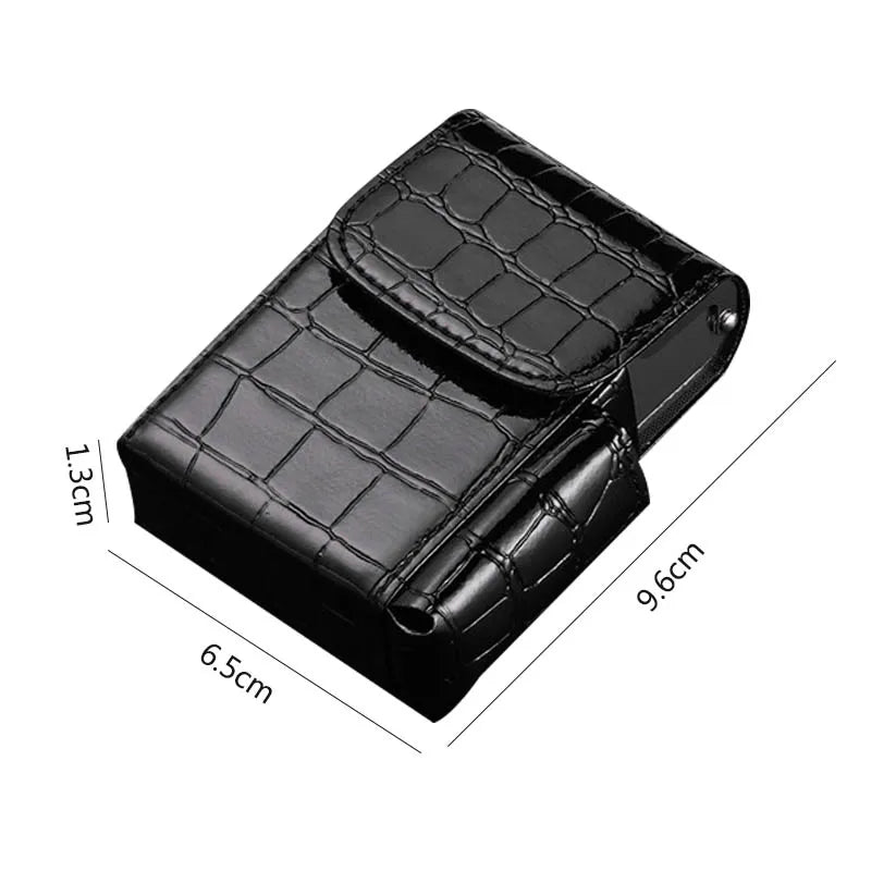 Crafted from premium PU leather with a refined litchi-texture finish, this compact smoker’s case combines elegance with practicality. Designed to hold cigarettes, a lighter, and even business cards, it’s the ultimate accessory for stylish smokers on the go.