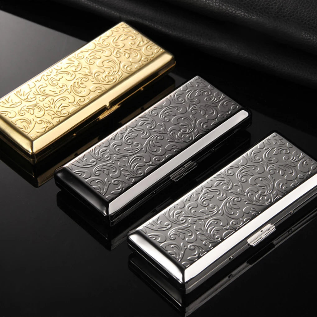 Elegant and practical, the Aria Case features a slim stainless-steel body with a delicately embossed pattern. Designed for modern smokers, it offers both style and protection in a compact form.