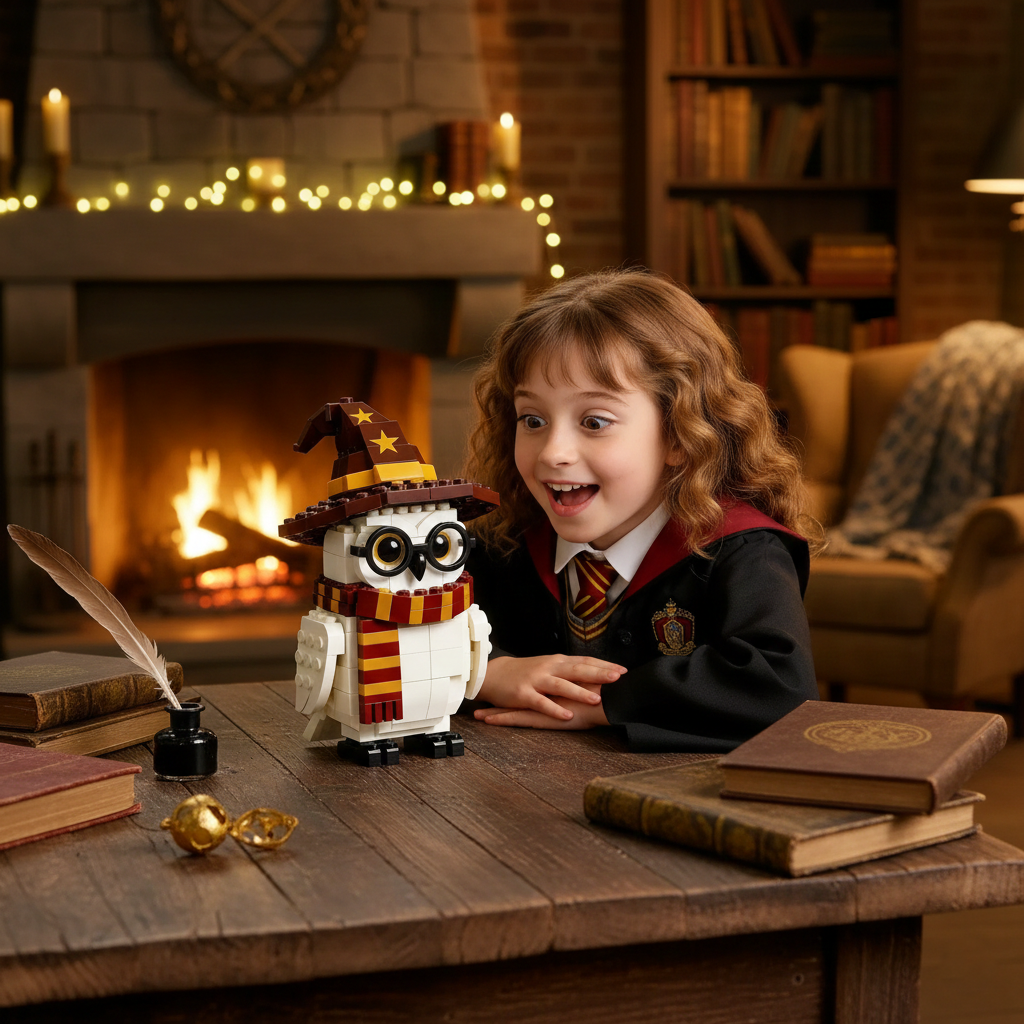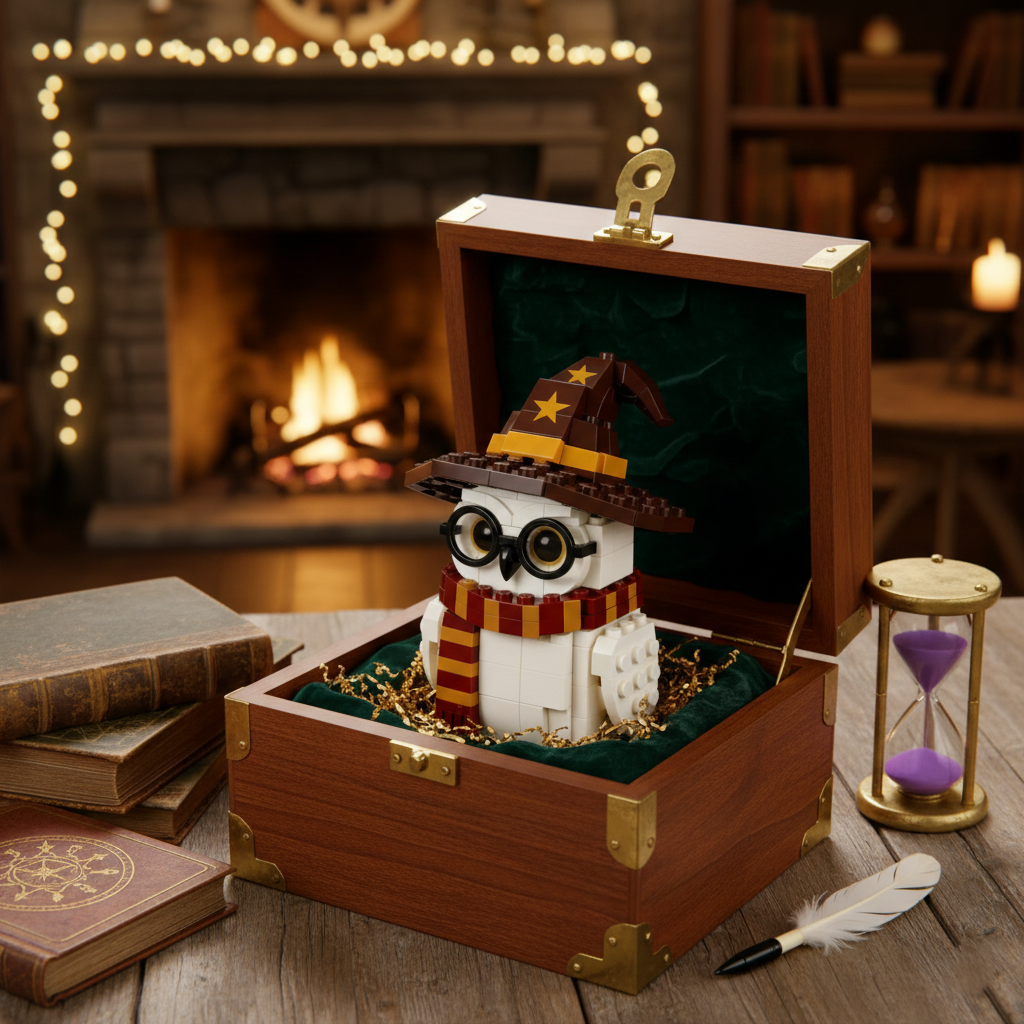 From the magical world where letters fly and destinies awaken, this snowy owl stands as a symbol of loyalty, wisdom, and quiet courage. Dressed in a wizard’s hat and scarf, this brick-built owl captures the spirit of a legendary magical companion—reborn as a limited collector’s edition for fans who believe magic never fades.