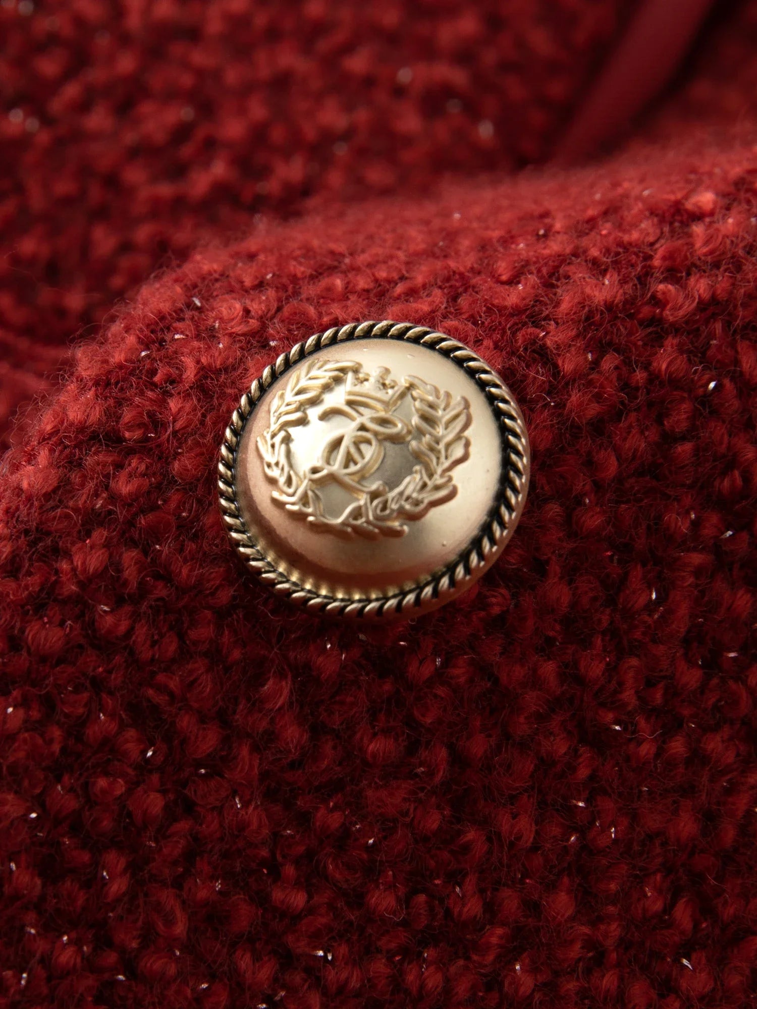 A refined blend of classic charm and modern elegance, this red wool skirt set captures sophistication with every detail. Perfect for festive gatherings or polished winter looks.