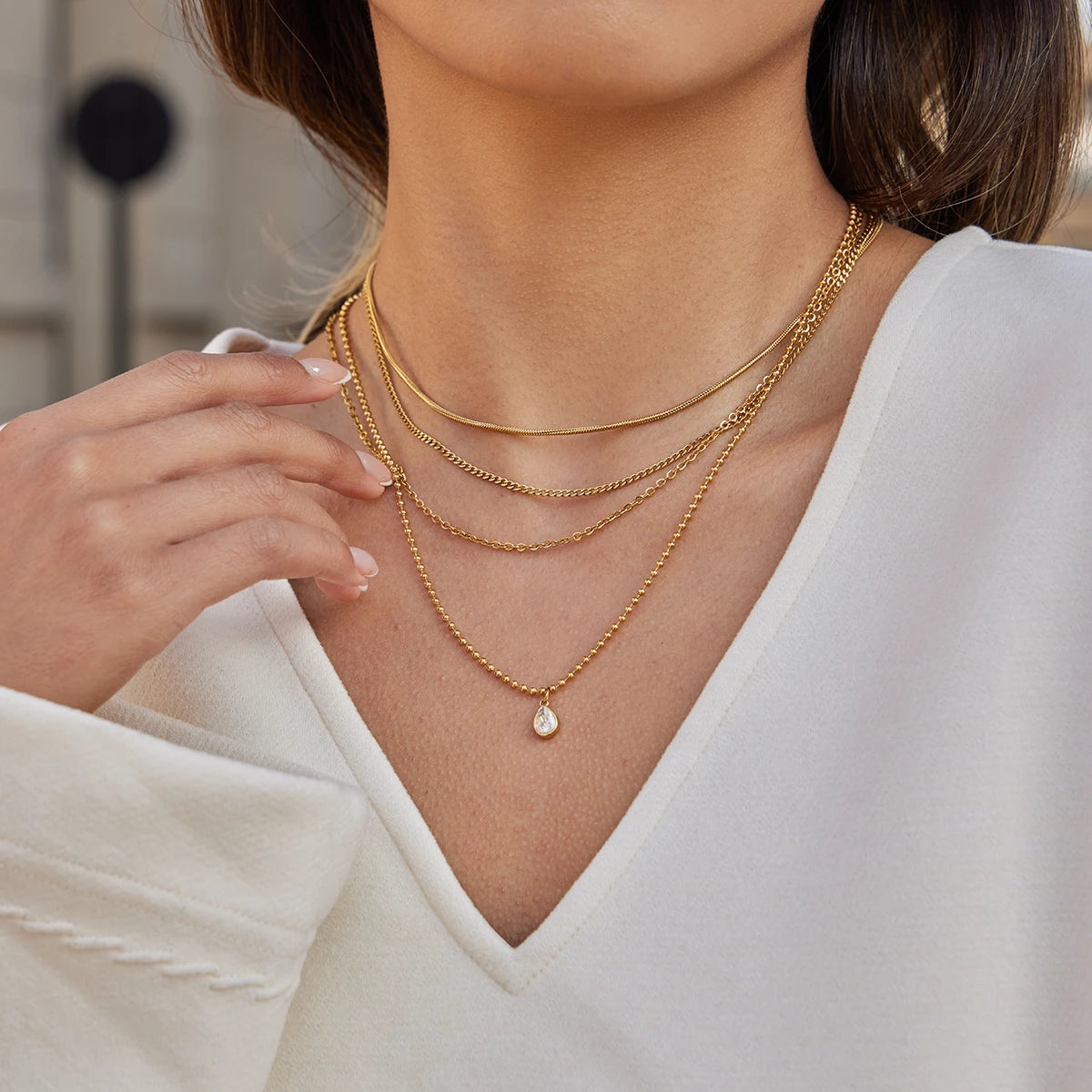 • Multilayer chain with water-drop zircon pendant