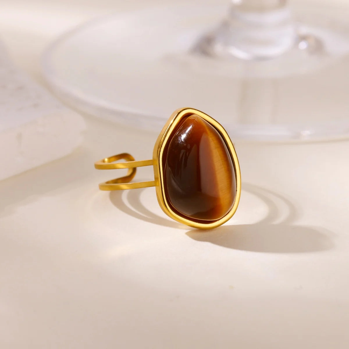 Crafted from stainless steel and plated with 18k gold, this luxurious ring features an eye-catching opal inlay set in a sleek geometric design. Perfect for weddings, parties, or as a thoughtful gift, it adds a touch of modern elegance to any occasion.