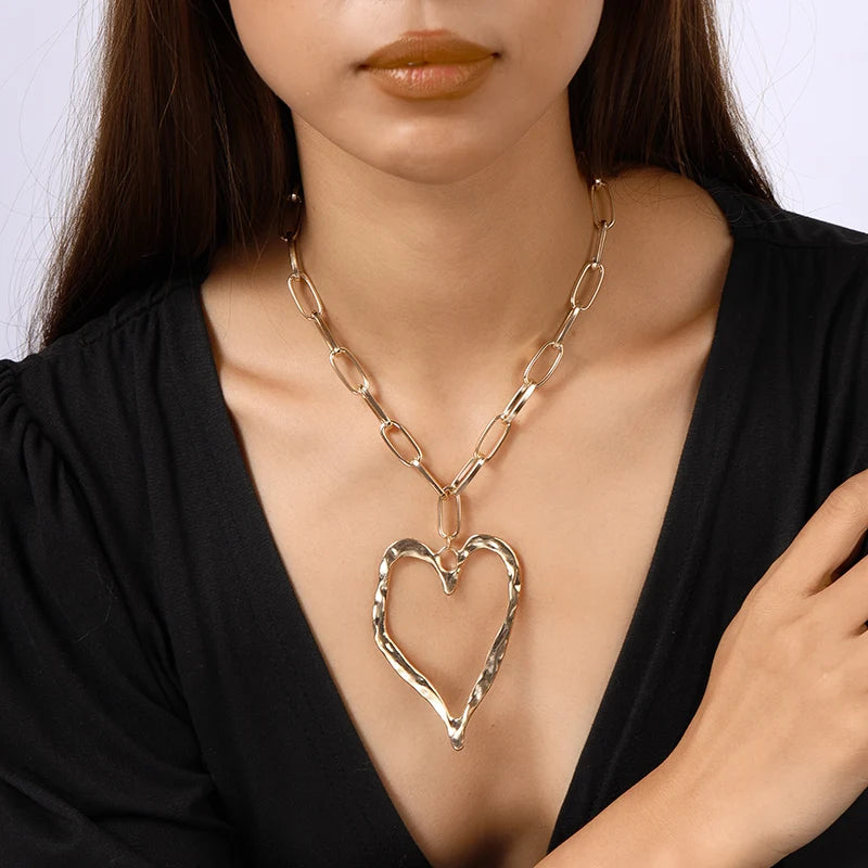 • Exaggerated hollow heart pendant for a striking, romantic look