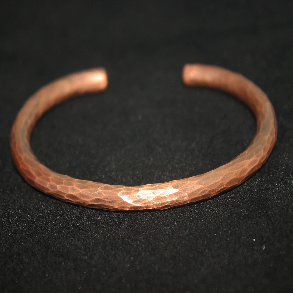 This vintage-inspired cuff bracelet is made from pure copper and handcrafted with a hammered texture, giving it a timeless and rustic feel. Unisex in design, it’s a meaningful accessory known for its potential healing properties, particularly for easing joint discomfort and arthritis pain.