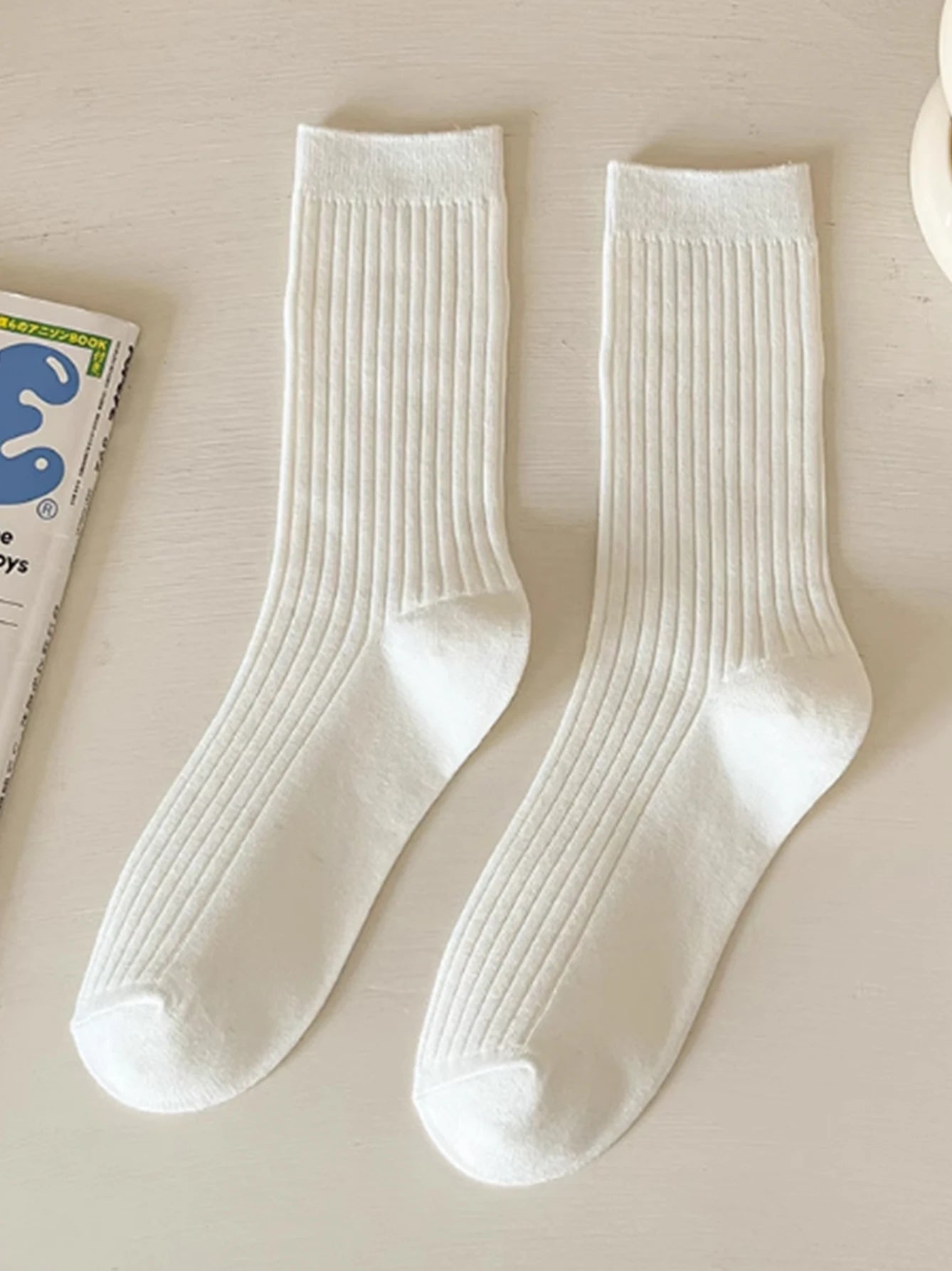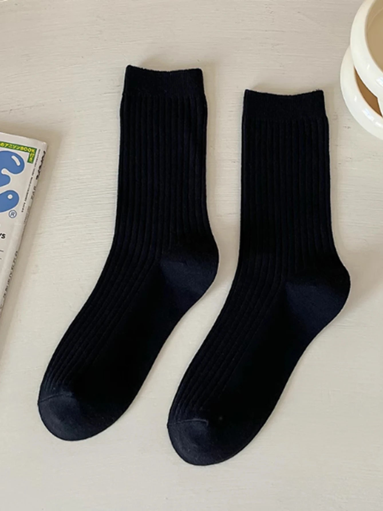 Designed for everyday warmth and comfort, these mid-calf knit socks feature a soft stretch blend and minimalist solid tones — perfect for pairing with boots or lounging at home.
