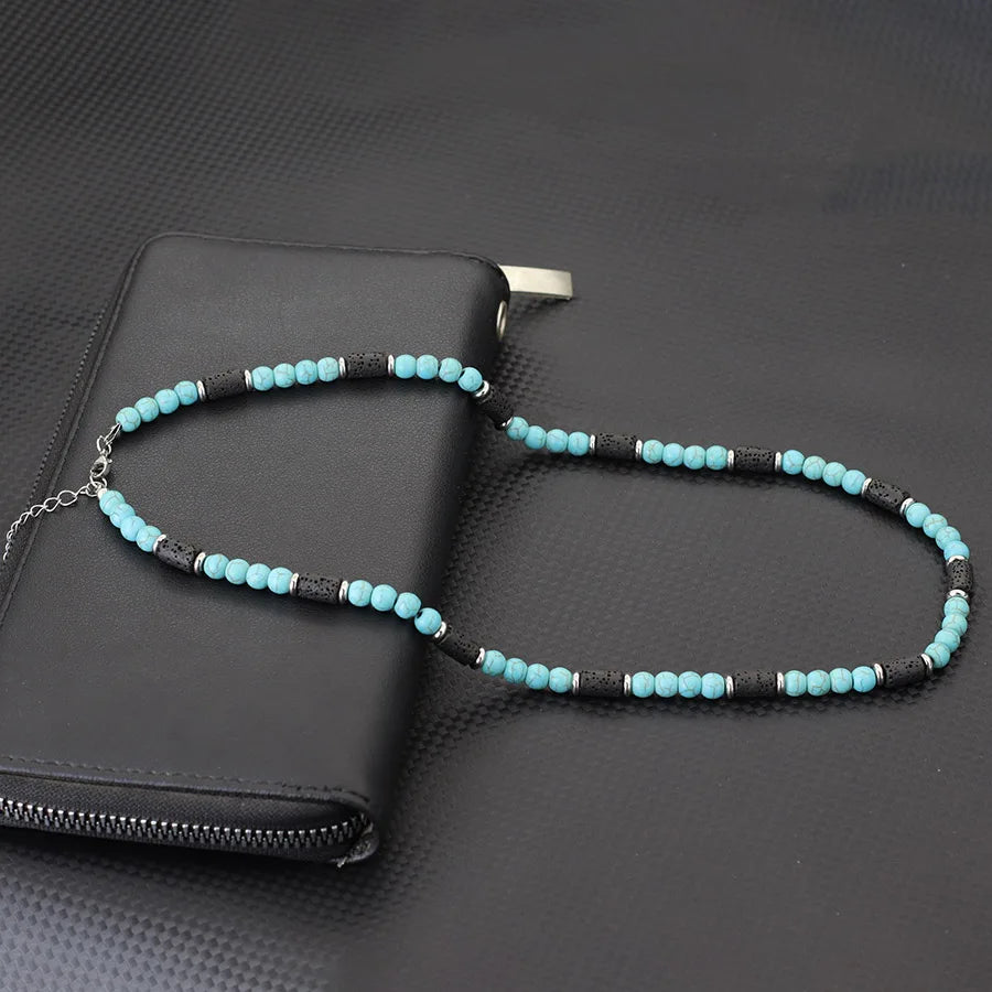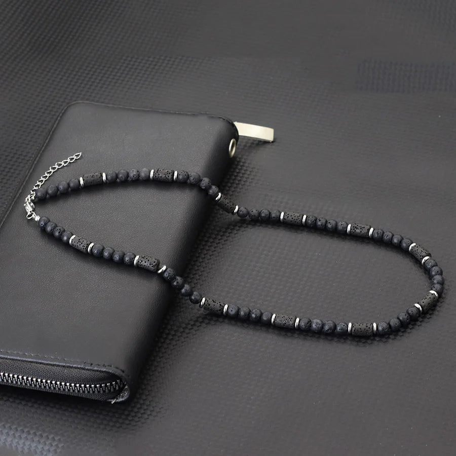 The Orion Necklace combines rugged style with natural energy. Handcrafted with lava, howlite, and onyx stones, it’s a bold yet refined piece that complements any modern man’s look.