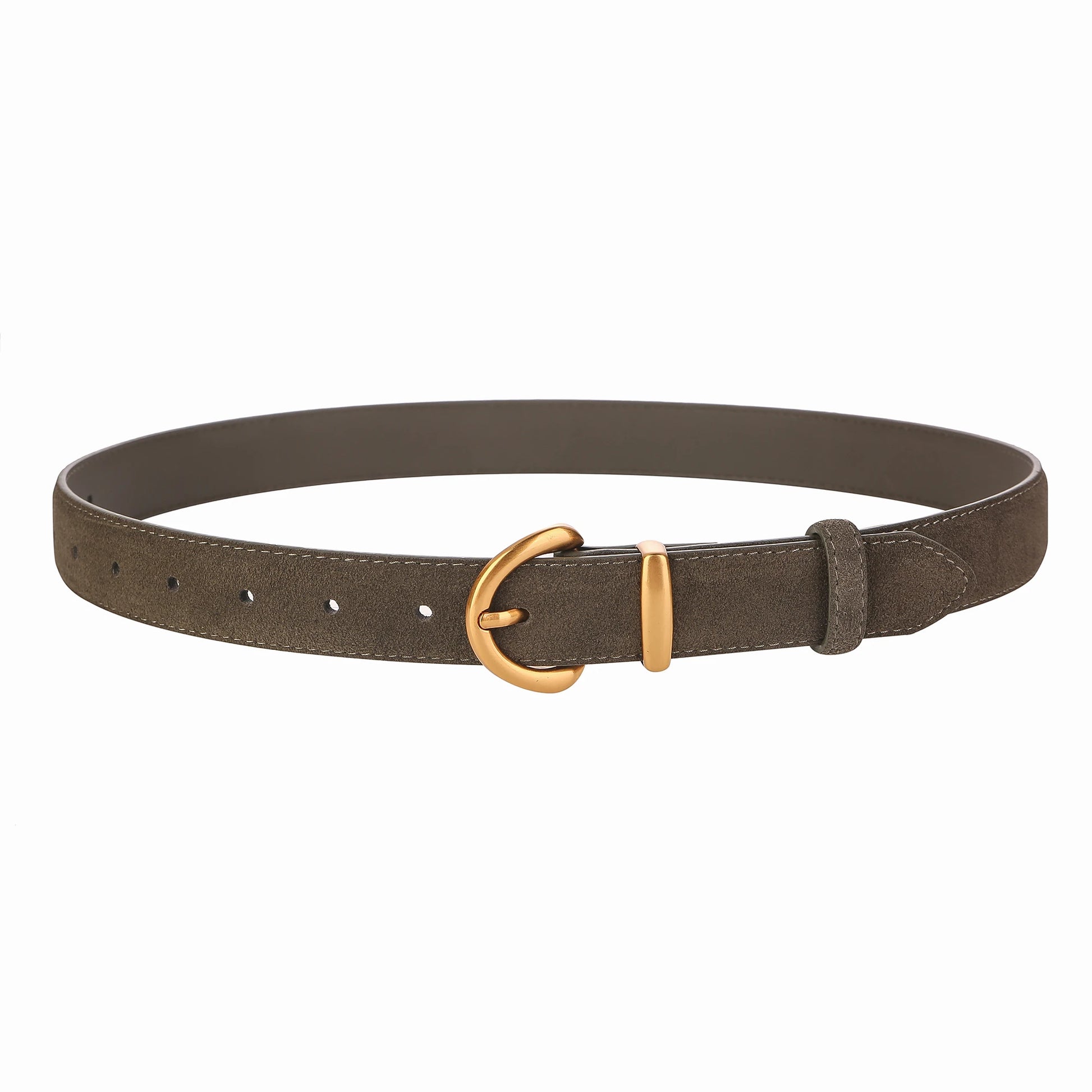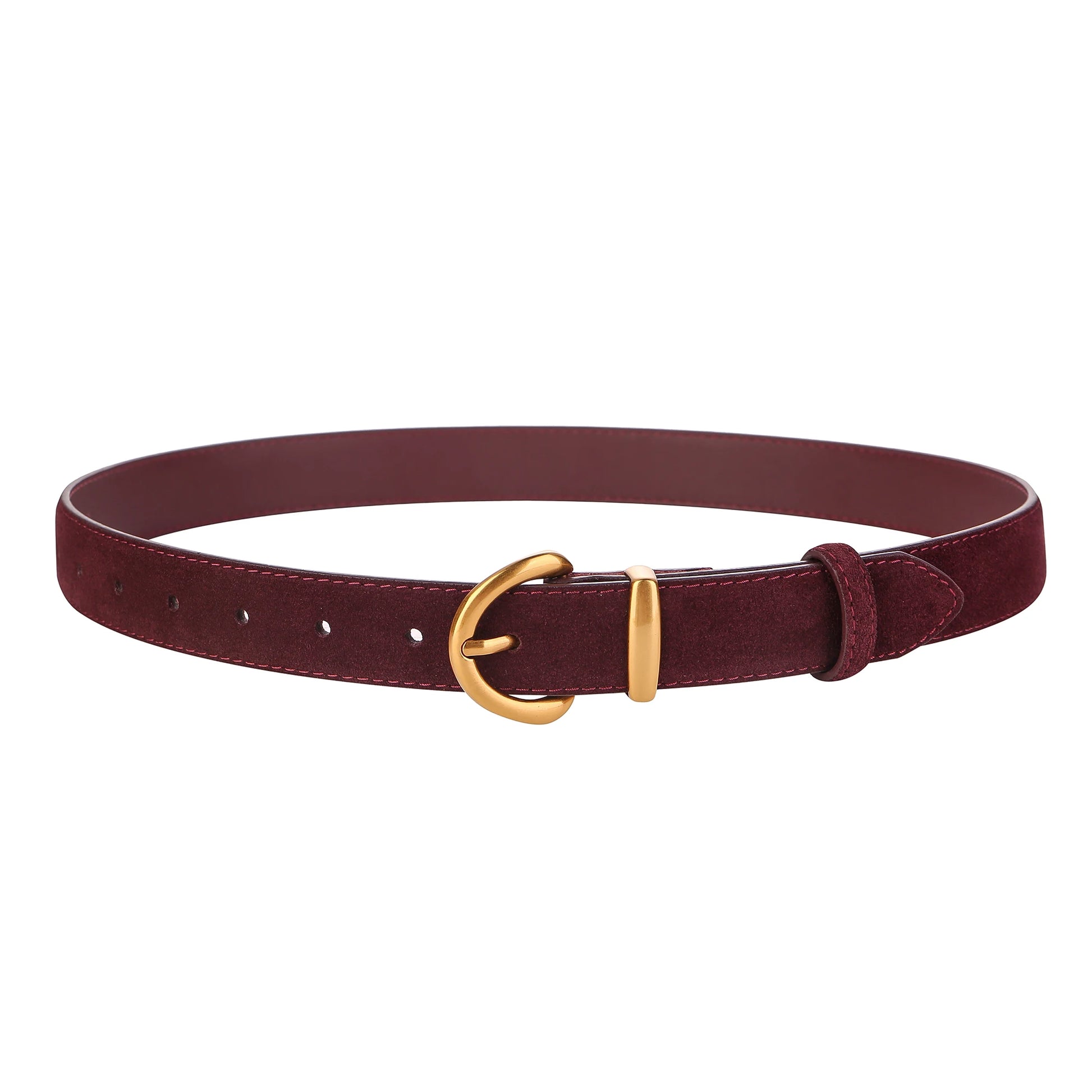 Crafted with a soft suede finish and gold alloy buckle, this elegant belt adds a refined touch to any outfit—perfect for pairing with dresses, skirts, or jeans.