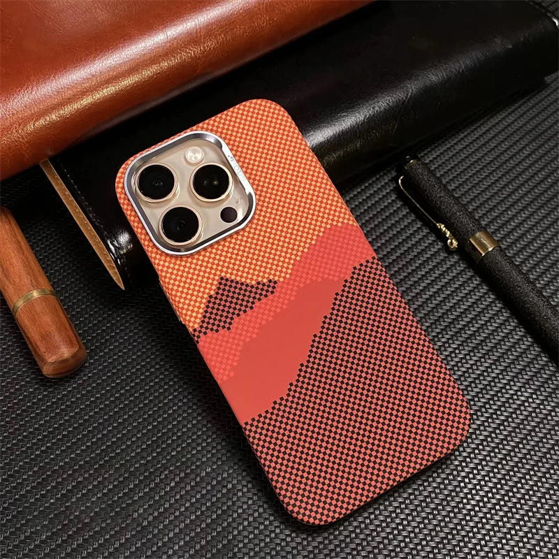 Designed for both protection and style, this ultra-thin MagSafe case features a bold plaid pattern and carbon fiber texture—bringing sophistication to your iPhone.