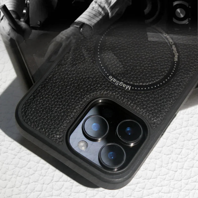 Designed for modern elegance and function, this premium leather MagSafe case provides strong magnetic alignment, wireless charging compatibility, and timeless style for your iPhone.
