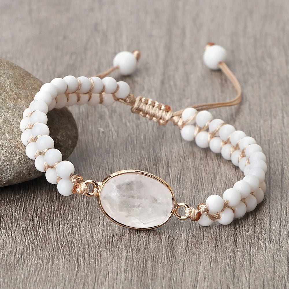 This handmade braided bracelet features 4mm mini glass beads of howlite, offering a calming and spiritual touch. Perfect for both men and women, this unisex bracelet is adjustable, making it ideal for yoga, prayer, or as a thoughtful gift to enhance mindfulness and well-being.