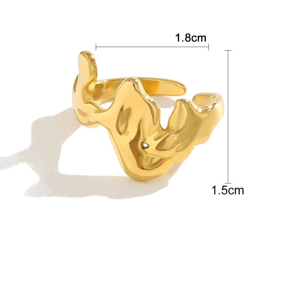 Crafted from high-quality 316L stainless steel and plated with luxurious 18k gold, this chic irregular ring brings a bold, trendy touch to your jewelry collection. Waterproof and designed for daily wear, it's perfect for adding a unique, personality-driven style to any occasion, from parties to weddings.