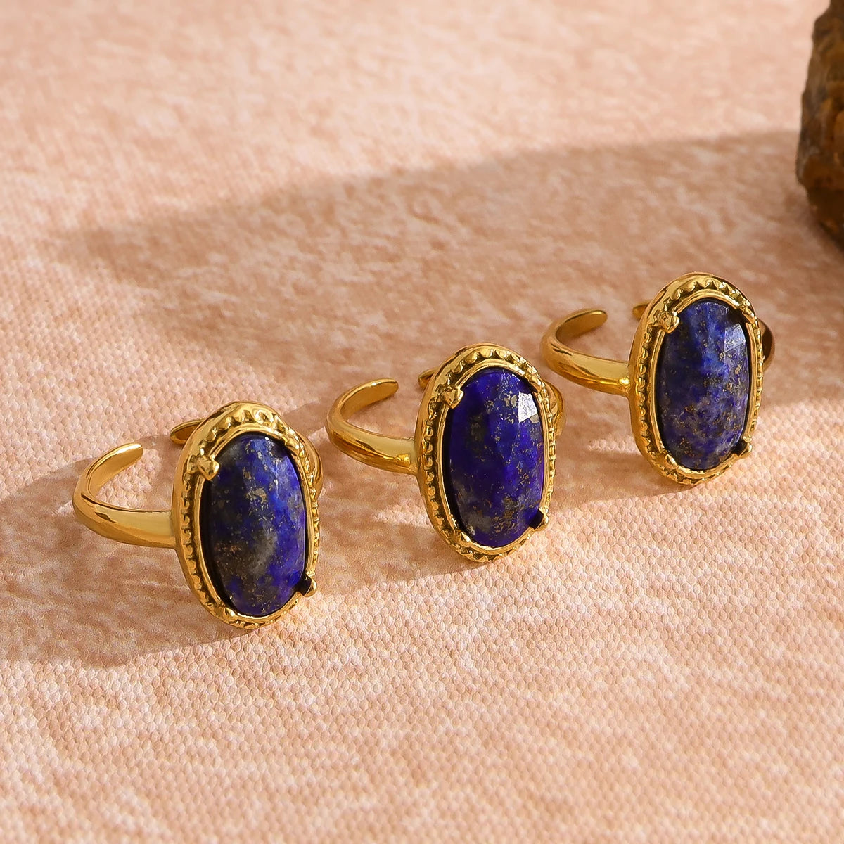 The Ocean Mist Ring blends modern luxury with effortless style, featuring a natural blue stone set in 18K gold-plated stainless steel. Designed to be both waterproof and durable, this vintage-inspired piece is perfect for daily wear or special occasions.